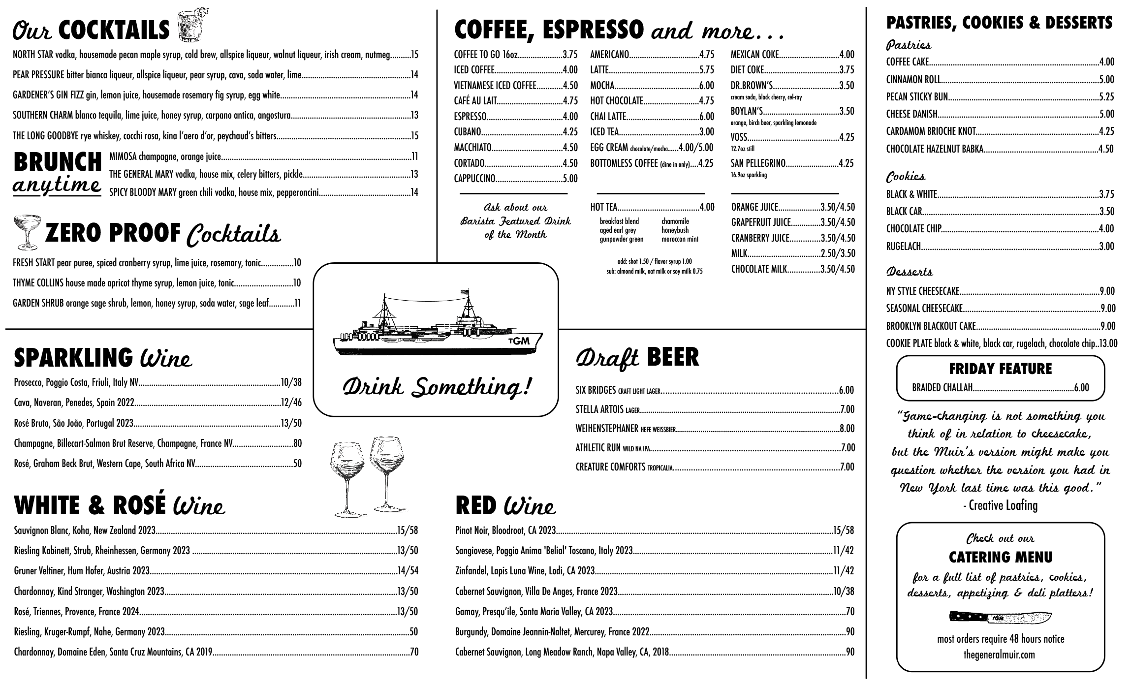 Enjoy TGM classics like cinnamon rolls, cheese danish, cardamom brioche, coffee cake, black & white cookies, rugelach, NY style cheesecake — and more! — perfect to pair with our coffee on your way to work or school or as an afternoon pick-me-up! Braided challah and chocolate babka available on Fridays.